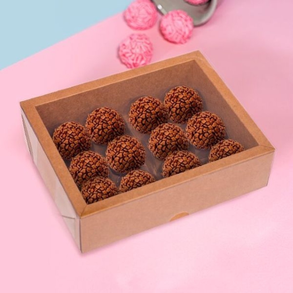 CAIXA ALTA MOLDURA PARA 12 DOCES EM PAPEL KRAFT, IDEAL PARA EMBALAGEM DE BRIGADEIROS, TRUFAS, BOMBONS E DOCES ARTESANAIS. POSSUI DESIGN RESISTENTE E ELEGANTE COM MOLDURA ESTRUTURADA QUE DESTACA A APRESENTAÇÃO DOS DOCES. A ALTURA DIFERENCIADA PROPORCIONA MAIS PROTEÇÃO E VALORIZA O CONTEÚDO INTERNO. INDICADA PARA LEMBRANCINHAS, PRESENTES GOURMET, FESTAS, EVENTOS, DATAS COMEMORATIVAS E VENDAS ESPECIALIZADAS.